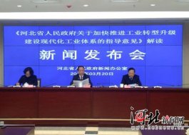 3月20日,河北省政府新聞辦召開新聞發(fā)布會,對《河北省人民政府關于加快推進工業(yè)轉型升級建設現(xiàn)代化工業(yè)體系的指導意見》進行解讀。圖為發(fā)布會現(xiàn)場。記者杜昱輝攝 河北新聞網(wǎng)3月20日訊